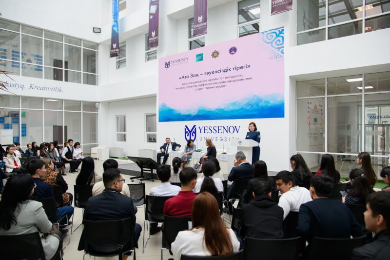 4 апреля в Yessenov University в рамках Национального плана мероприятий, посвящённых 30-летию Конституции Республики Казахстан, состоялась встреча профессорско-преподавательского состава университета и студентов факультета «Бизнес и право».