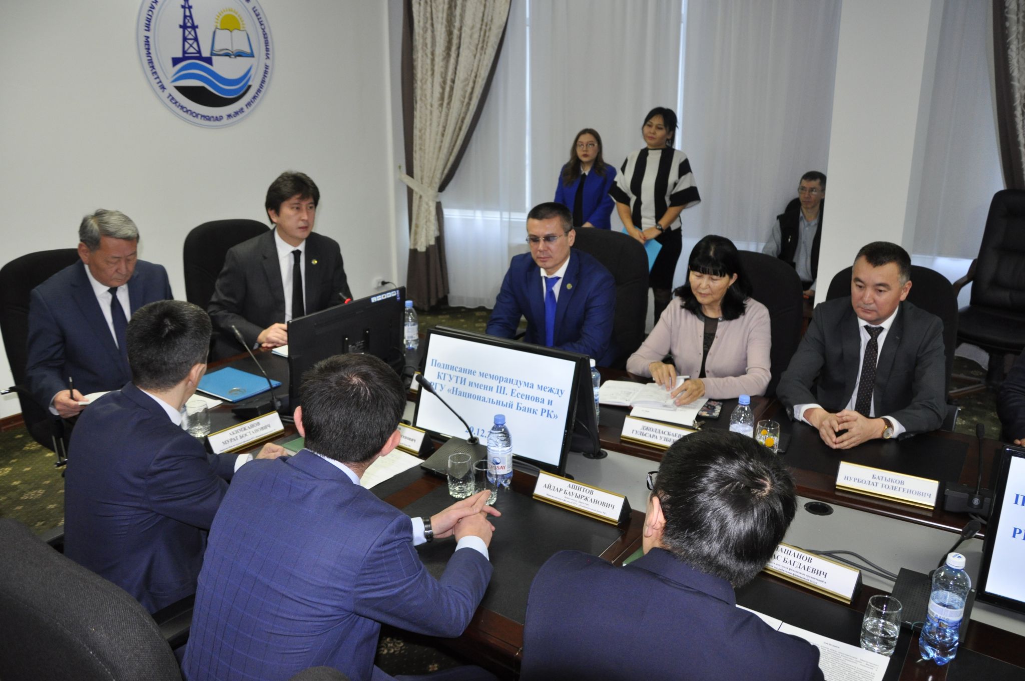 2017 жылдың 29 желтоқсанда Ш. Есенов атындағы КМТИУ-да ректоры Б.Б.Ахметов және ҚР Ұлттық Банкінің Маңғыстау филиалының директоры М.Б.Акимжанов қаржы сауаттылығын көтеру, бәсекеге қабілетті білікті мамандарды дайындау, қаржы салаларында жинақталған біліммен, тәжірибелермен алмасу және бірлескен конференциялар мен семинарлар өткізу мақсатында ынтымақтастық жөніндегі меморандумға қол қойды.