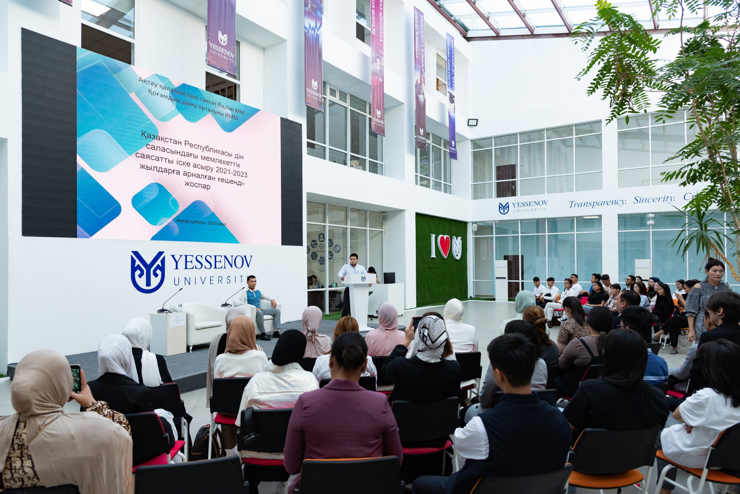 На эту встречу были приглашены в качестве докладчиков ГУ «Актауский городской отдел внутренней политики и развития языков», КГУ «Центр общественного развития», информационно-аналитического отдела по вопросам религии религиовед Газимов Нурлан Калдыбаевич и исламовед Абдирханов Умирбек Мухамбетович, которые призвали студентов опасаться угроз религиозного экстремизма и листовок религиозных течений, пропагандирующих радикальную религиозную идею в интернет-сети.