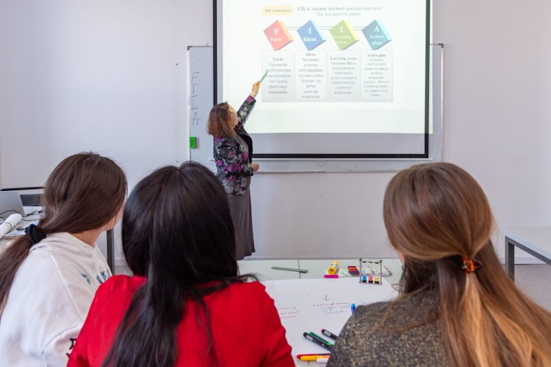 Курсы проводят высококвалифицированные тренера: магистр педагогических наук Ж.А.Таджибаева; заведующая кафедрой «Естественные науки», кандидат педагогических наук Э.У.Сагиндыкова; кандидат педагогических наук З.Ж.Айджанова; ассистент профессора кафедры «Компьютерные науки» Г.О.Урбисинова; магистр педагогических наук Ж.Б.Бекенжан; ассистент профессора кафедры «Педагогика» М.Б.Кабакова; магистр иностранных языковых наук М.С.Жақыпбекова и профессор кафедры «Компьютерные науки» Э.А.Абдыкеримова. Будущие педагоги средних школ проходят также педагогическую практику в образовательных учреждениях.