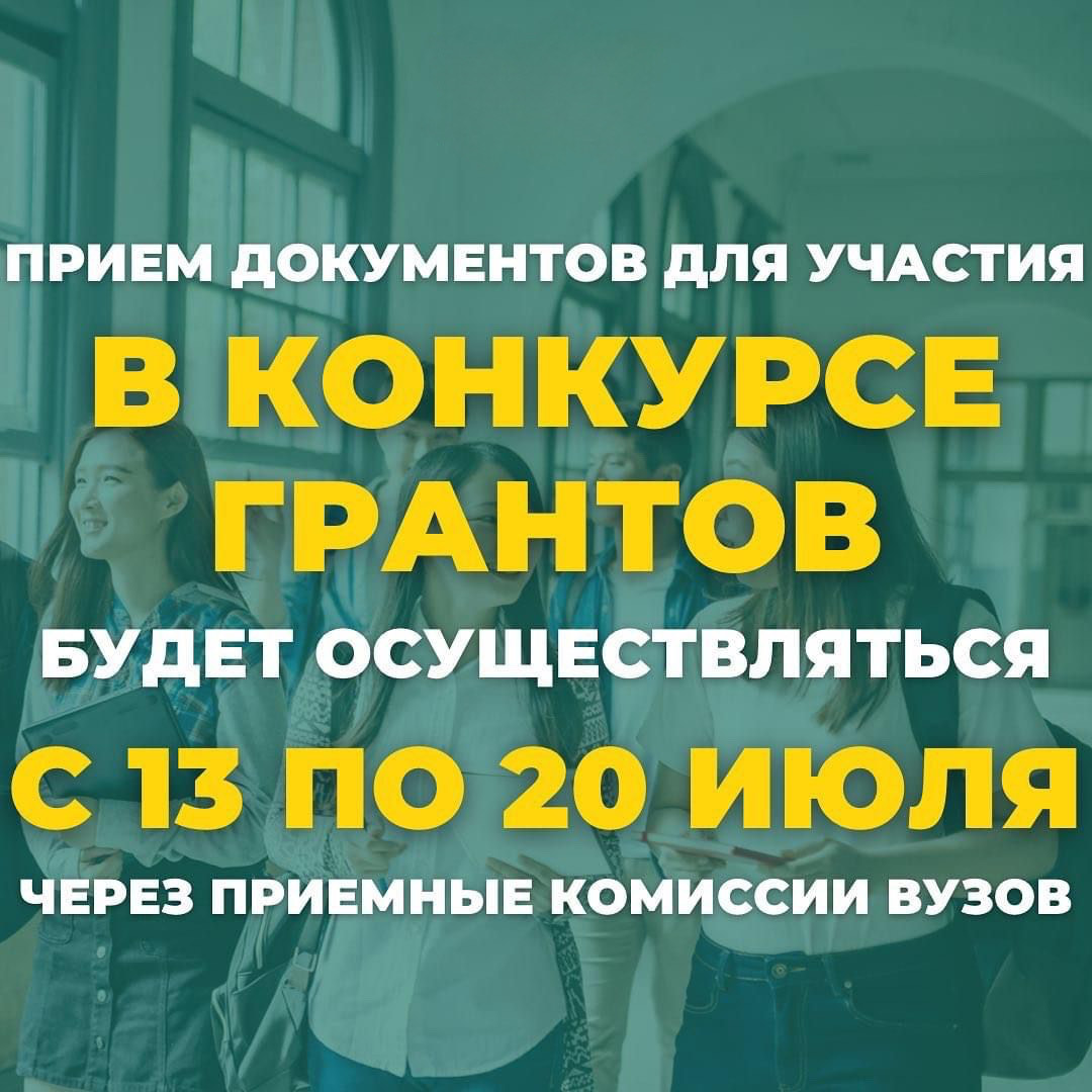 Спешим сообщить, что прием документов для участия в конкурсе на присуждение государственных образовательных грантов в 2022 году начнется 13 июля и продлится до 20 июля !