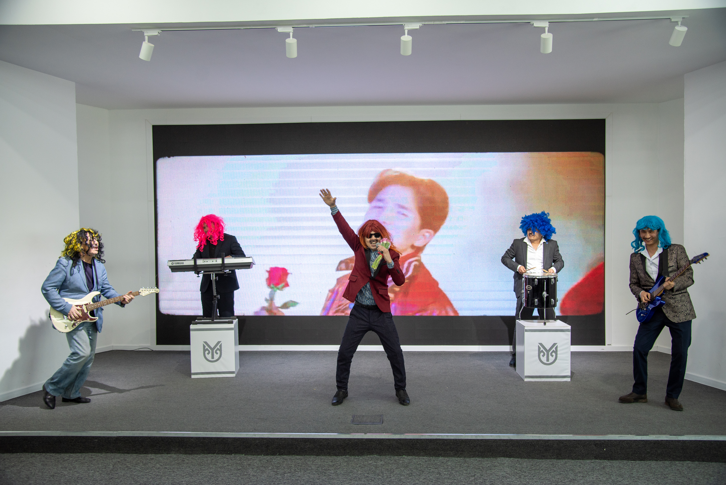 Праздничный вечер начался с видеопоздравления Министра науки и высшего образования РК Саясата Нурбек, далее прозвучали песни и поздравления в исполнении мужской половины работников университета.