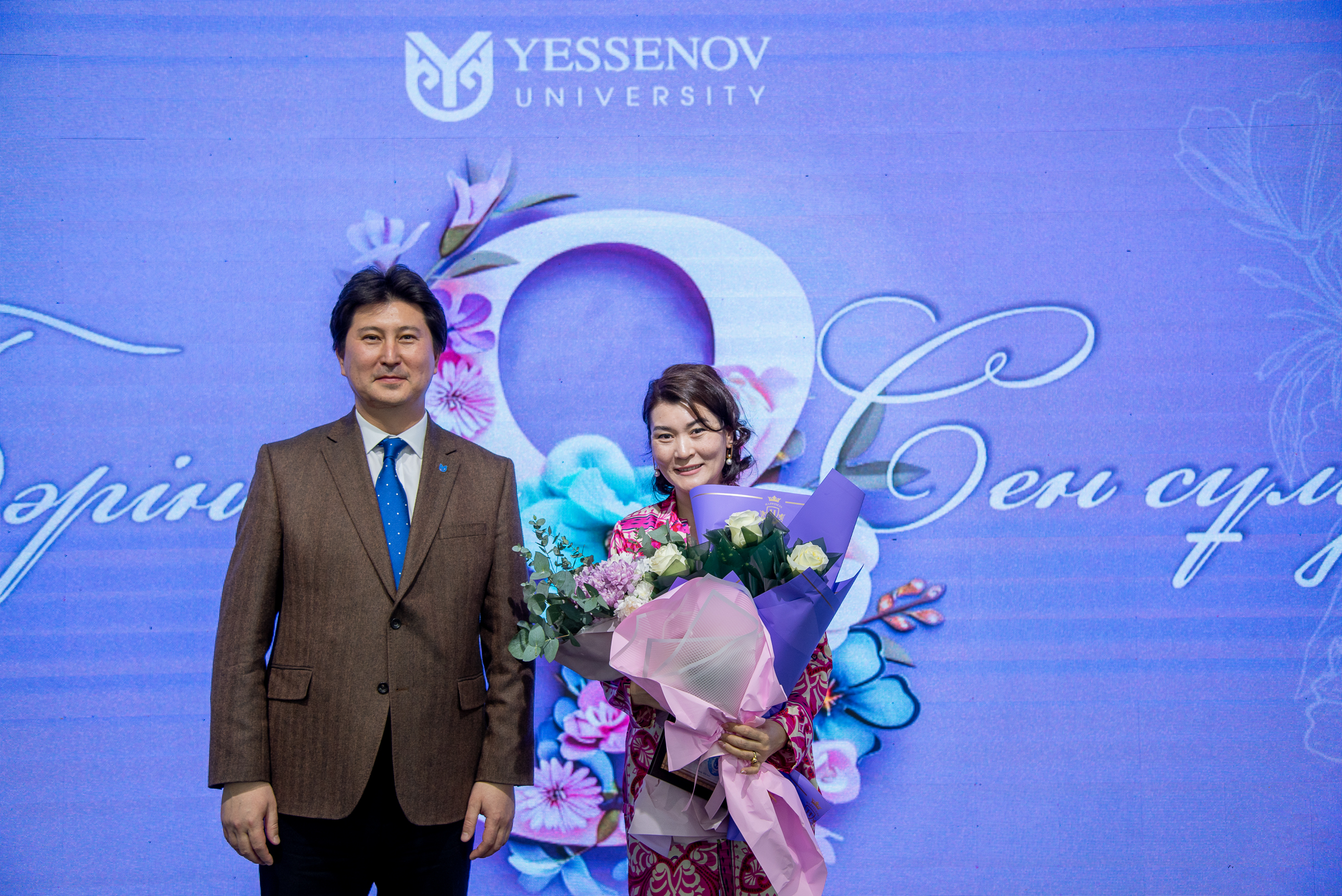 Президент Yessenov University Берик Ахметов поздравил преподавательниц с этим замечательным праздником и вручил им Благодарственное письмо акима Мангистауской области, Почетную грамоту и нагрудный знак YU за выдающийся вклад в развитие университета.