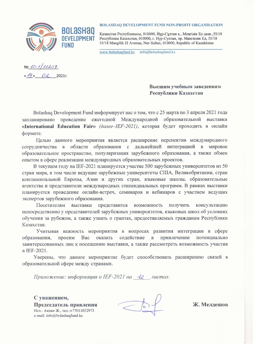 Согласно приказу Министра образования и науки РК от 22.04.2020 №156, приказ Министра образования и науки Республики Казахстан от 28 января 2020 г. №39 «Об утверждении Плана реализации программы академической мобильности» отменен. За дополнительной информацией обращайтесь в Международный офис (каб. А12-04, А12-08; тел.: +7(7292) 788 788, вн. 260, 261).