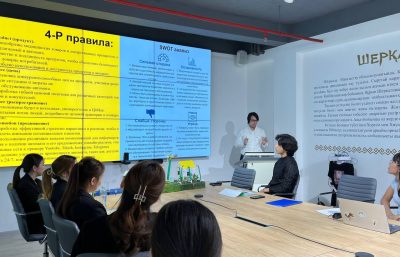 Последний день конкурса открыла декан факультета «Бизнес и право» Айжан Омарова. Она выступила с поздравительной речью и пожелал всем участникам в будущем реализовывать свои проекты, быть профессионалами в своем деле.