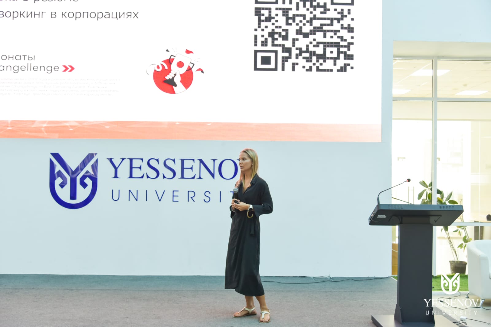 Со словами приветствия  гостям  и студентам выступила декан факультета «Бизнес и право» — Айжан Игиликовна Омарова, пожелав плодотворной работы и успехов в открытии своего бизнеса.