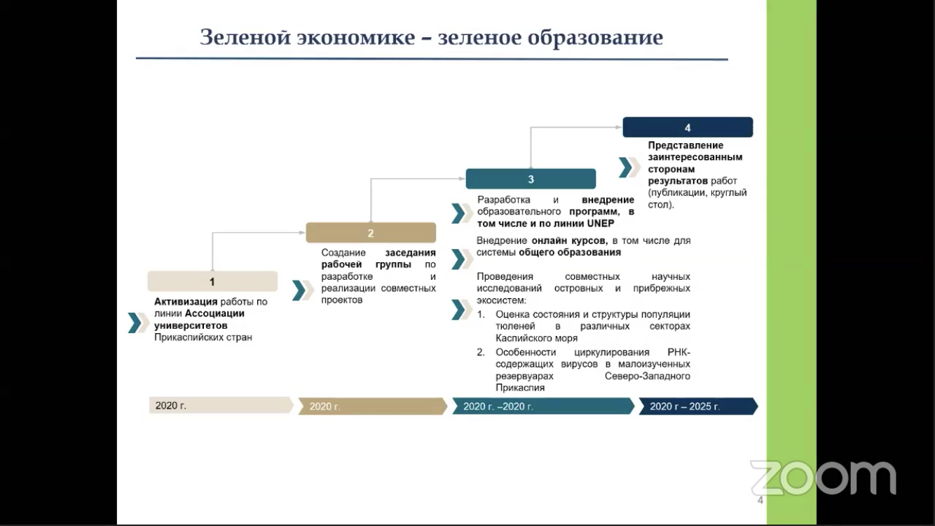 Также в ходе конференции были обсуждены эколого-экономические аспекты и проблемы модернизации экономик стран «каспийской пятёрки», прогнозные оценки влияния пандемии на страны Прикаспия и взаимодействие вузов и научных, а также экспертных сообществ региона.