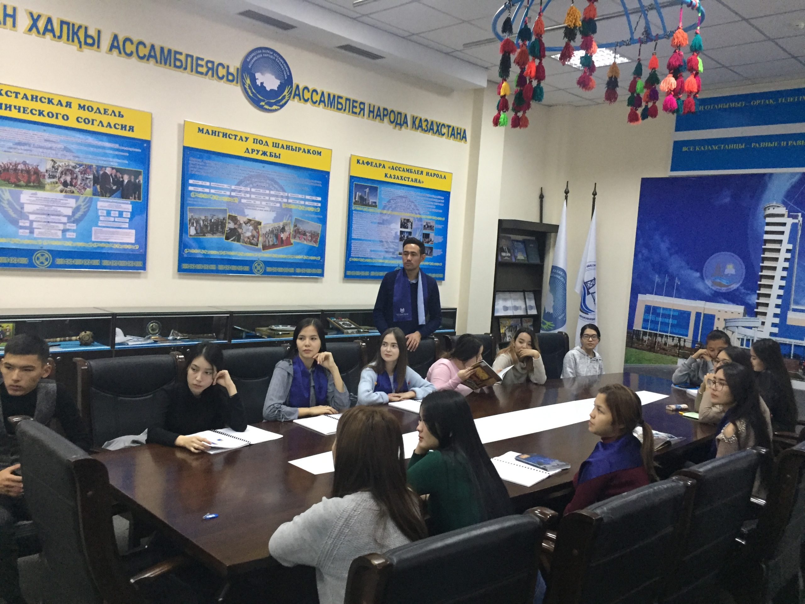 Доцентом кафедры «Ассамблея народа Казахстана» «Базового» факультета Yessenov University Мыржакыпом Багдатовичем был организован круглый стол на тему: «Мой выбор — толерантность».