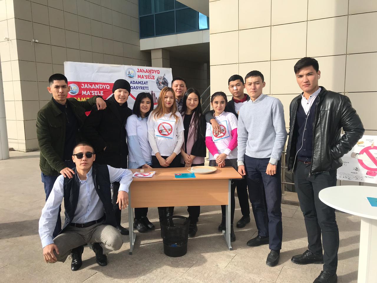 Студенты 2 курса по специальности «Юриспруденция» Yessenov University под руководством старшего преподавателя Г.Ж. Кобегеновой провели акцию, которое являлось частью практического занятия по дисциплине «Административное право Республики Казахстан». Акцент был сделан толкованию норм КоАП РК, предусматривающий запрет курения в общественных местах, а также вопросам профилактики административных правонарушений.