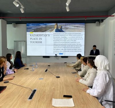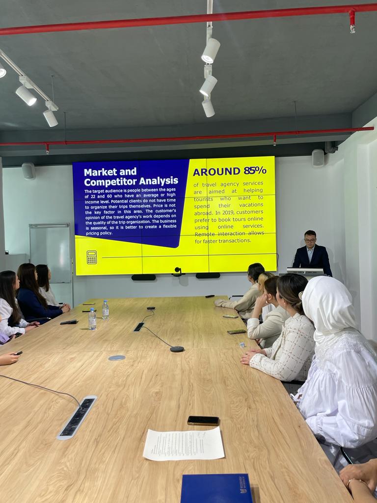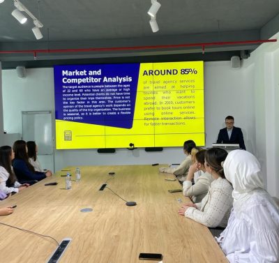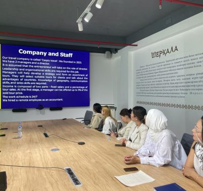 Студентка 2 курса Сунгатова Азиза выступила с докладом на тему «Бизнес планирование в гостеприимстве», студентка 4 курса Расулова Нураим на тему «Корпе».