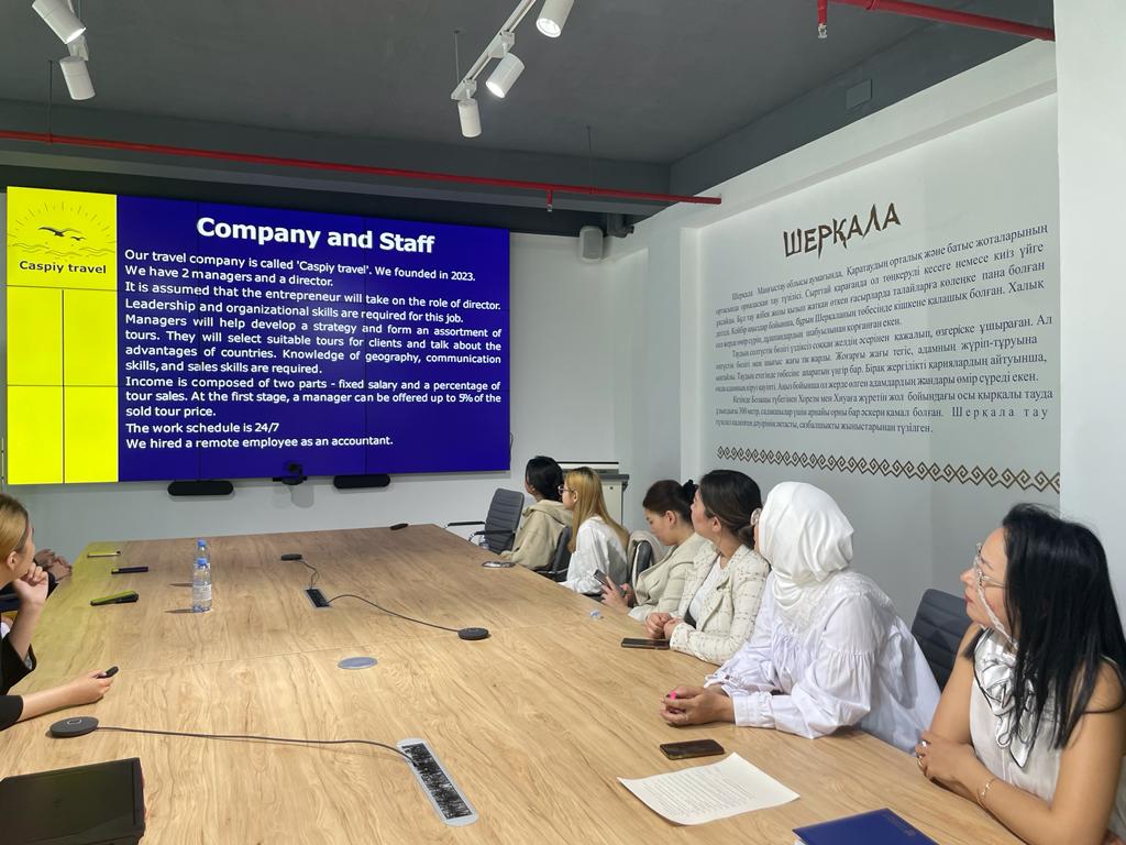 В рамках программы ERASMUS+ с проектом «Пилотные курсы по практическому бизнесу на основе сотрудничества университетов и предприятий для развития Каспийского региона» 12 мая 2021 г. состоялся круглый стол с работодателями. В круглом столе приняли участие заместитель директора Палаты предпринимателей» Атамекен » по Мангистауской области Айтжанова Акку, менеджер по развитию персонала отеля Rixos Waterworld в Актау Муратова Асем, заместитель руководителя Управления туризма Мангистауской области Омарова Гульсим.