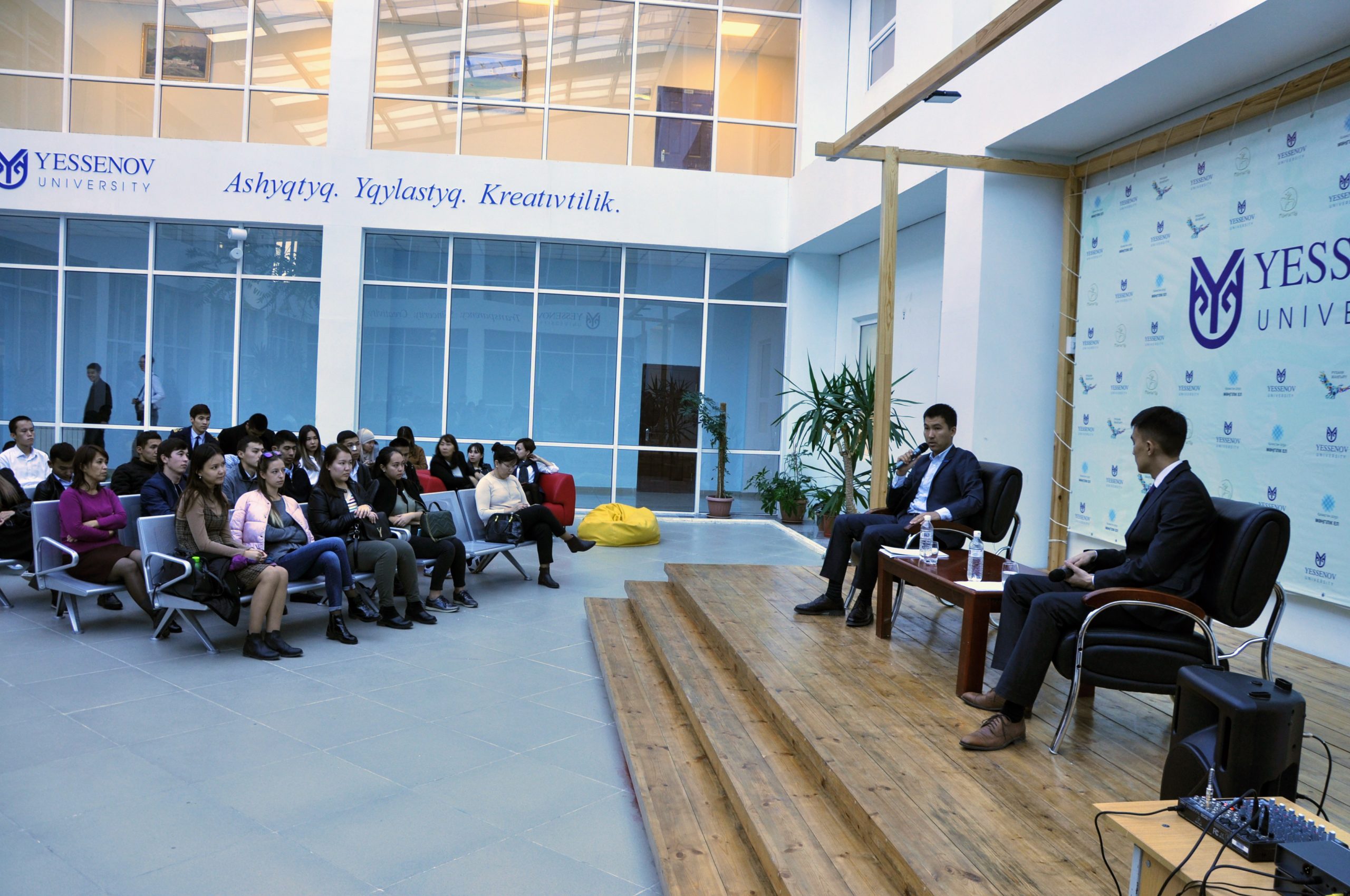 В Yessenov University прошла встреча с выпускником международной стипендии Президента Республики Казахстан «Болашак» и международной стипендии Правительства Великобритании «Chevening» Ринат Елеусиновичем Нурмаганбетом в рамках проекта #PublicTalk.