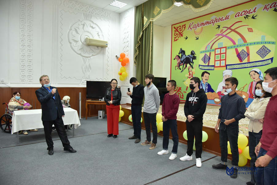 7 октября под руководством старшего куратора кафедры «Физическая культура и спорт» факультета образования Молдаханова И. О. и куратора 1 курса Жанболатовны А., студенты 1-4 курсов организовали благотворительную акцию в областной дом престарелых. В доме престарелых студенты показали свои таланты и раздали старикам сладкие угощения, которые они привезли с собой.
