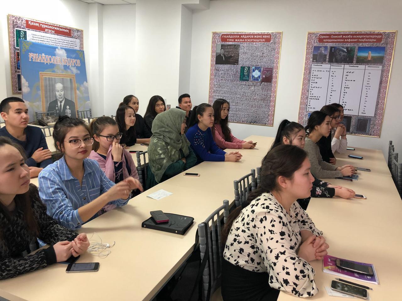 В Yessenov University студенты кафедры «Казахской филология» были ознакомлены с учебниками «Введение в языкознание» (авторы учебника-Виктория Фромкин, Роберт Родман и Нина Хайамс), «Язык и межкультурная коммуникация» (автор учебника-Светлана Тер-Минасова), входящих в 18 переведенных книг в рамках проекта 100 новых учебников на казахском языке, которые были указаны в президенской програмной статье «Взгляд в будущее: модернизация общественного сознания».