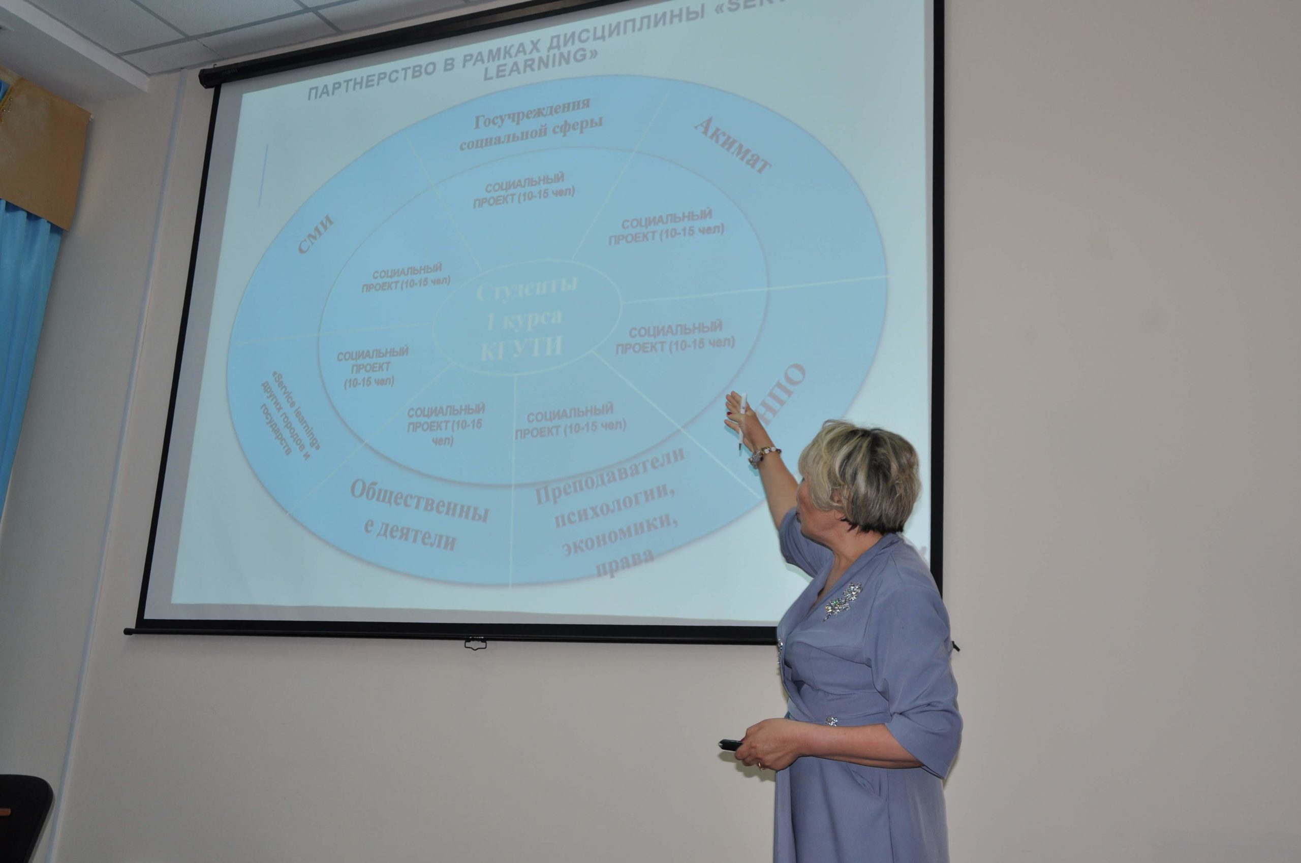 Ректор Yessenov University Ахметов Б.Б. поделился с партнерами своим видением вуза в будущем, разъяснил цели задачи, поставленные перед новой дисциплиной «Служение обществу». Координатор проекта Бисингалиева И.В. в презентации раскрыла особенности и этапы ее проведения.