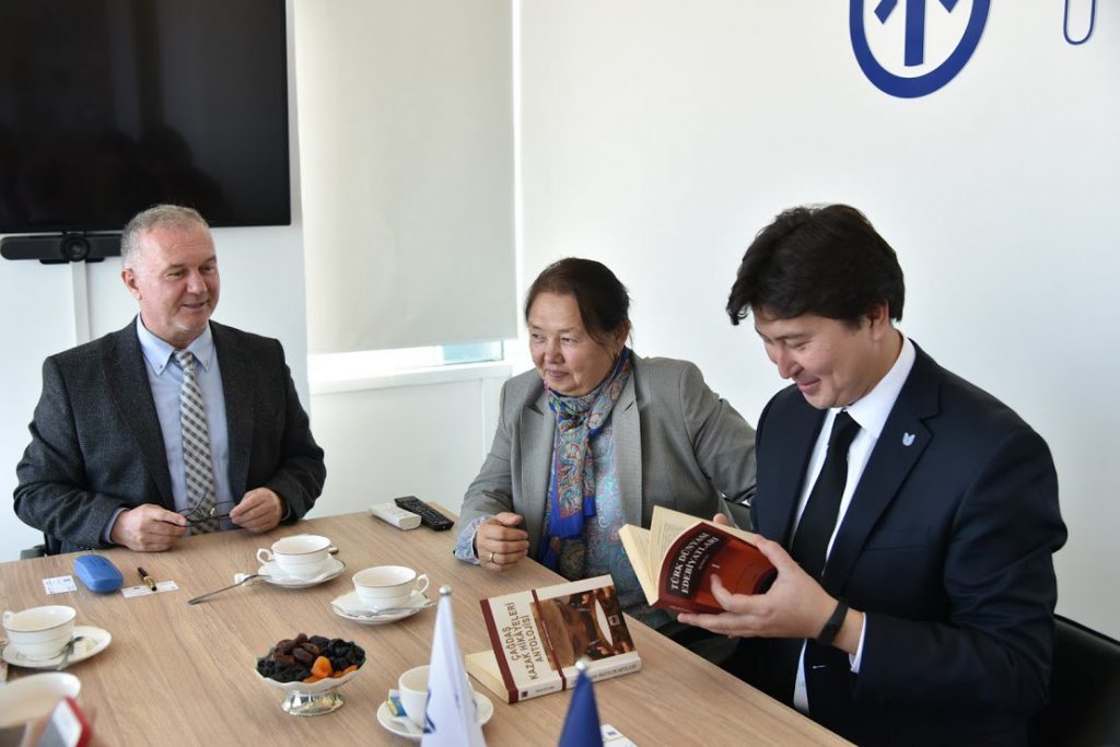 В ходе встречи переводчик и поэт Анатолий Ким рассказал об особенностях перевода произведений Абиша Кекильбаева и подарил ректору университета книгу переводов его произведений. Профессор Университета Кастанмони Турецкой Республики Орхан Сөйлемез изъявил желание заключить договор о сотрудничестве с Yessenov University.