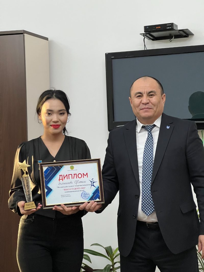 Студентка 4 курса факультета Бизнеса и права специальности «Государственное и местное управление» ФАТИМА Есенгалиева выиграла номинацию «Студент года-2022».