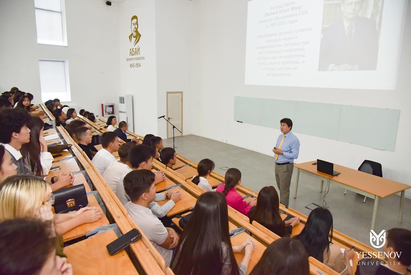 8 сентября президент Yessenov University Ахметов Берик Бакытжанович встретился со студентами 1-го курса факультета “Науки и технологии”, расположенного в главном здании, и факультета “Инжиниринг”, расположенного в 24 мкр.