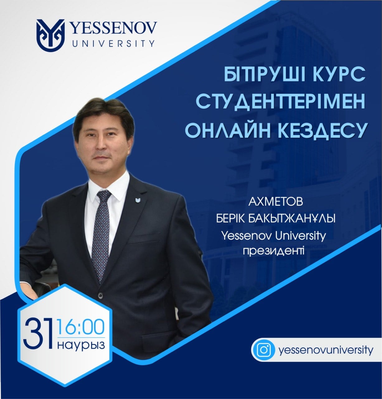 31 марта в 16:00 состоится прямой эфир президента Yessenov University со студентами выпускных курсов.