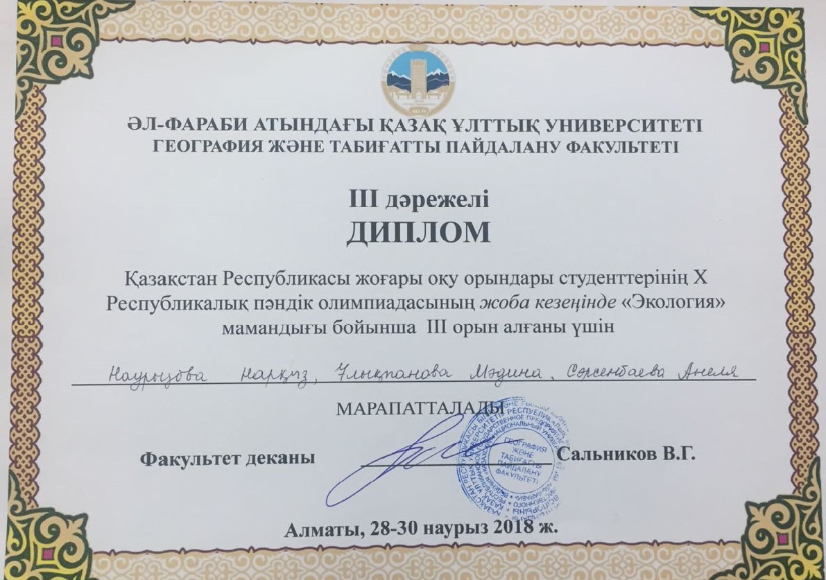С 28 по 30 марта прошел II этап X Республиканской студенческой предметной олимпиады в Казахском национальном университете имени аль-Фараби. В олипиаде приняли участие 26 команд со всех ВУЗ-ов Казахстана.