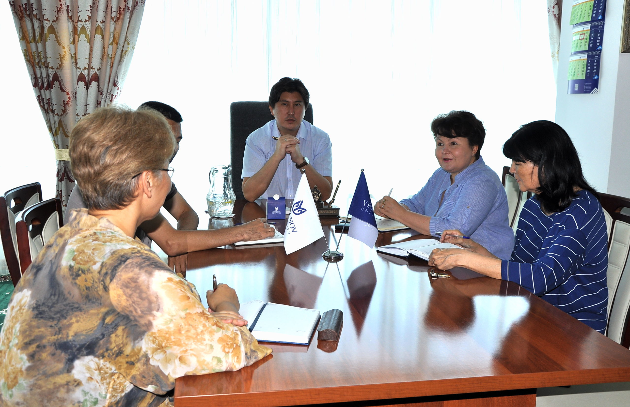 В стенах Yessenov University прошла встреча руководством фонда Yessenov Foundation. Директор научно-образовательного фонда Грищенко Ирина Фёдоровна и ректор университета Б.Б. Ахметов обсудили возможности создания центра по изучению английского языка для студентаов и профессорско-преподавательского состава университета. Вторым вопросом в ходе встречи было развитие игры шахматы на кафедре «Физкультура и спорт» с последующим вручением студентам окончивших данную специальность квалификацию «Тренер по шахматам».