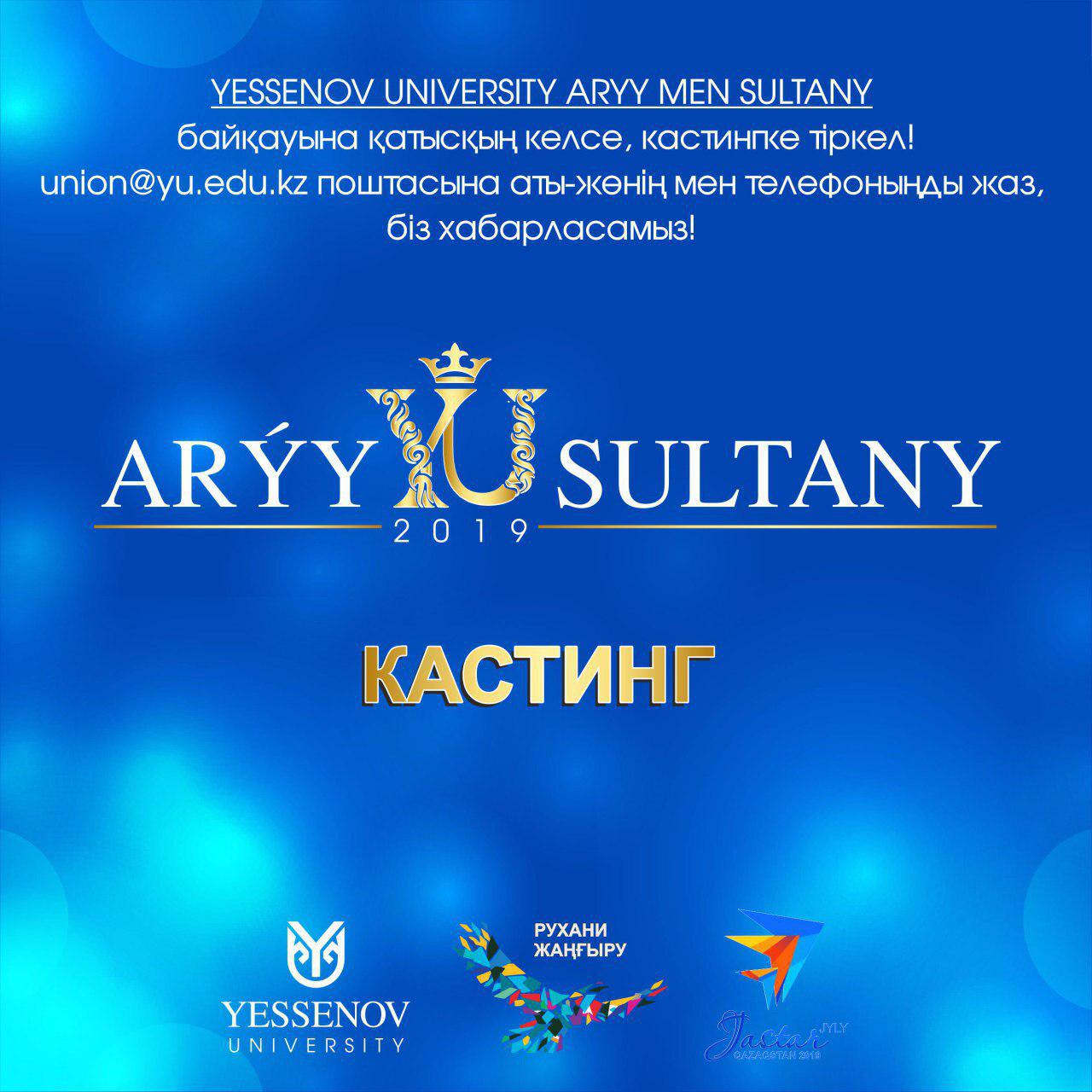 Если ты хочешь принять участие в конкурсе Yessenov University Arýy men Sultany, регистрируйся на кастинг! union@yu.edu.kz напишите имя и телефон на почту, мы звоним!