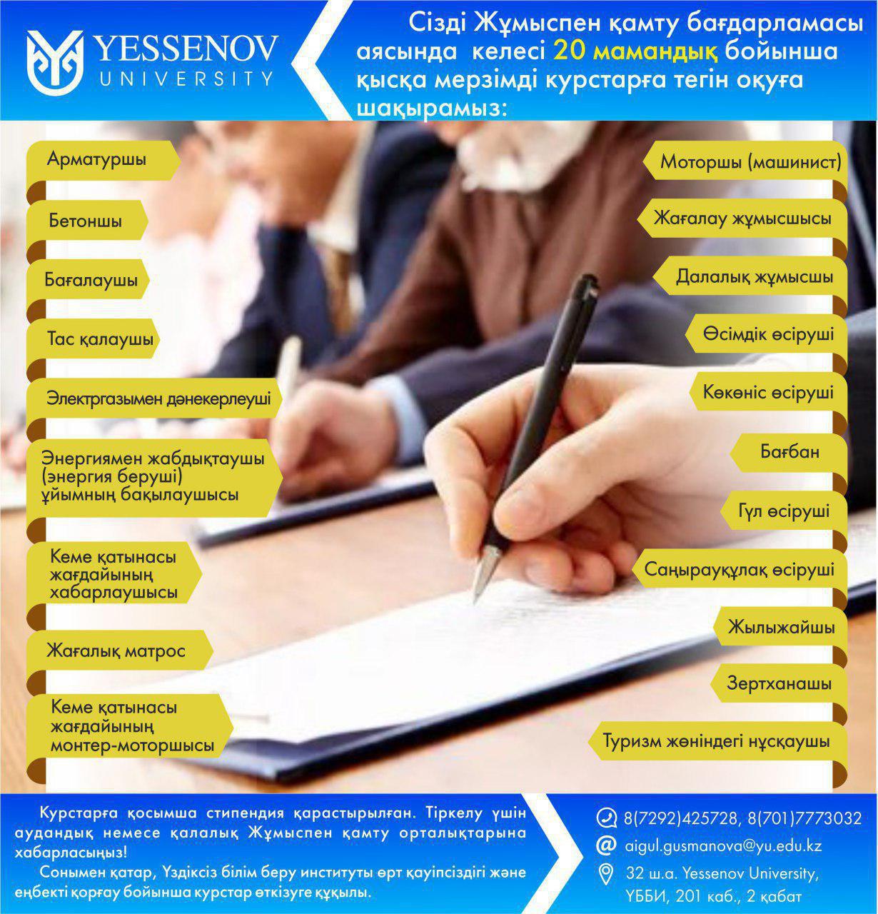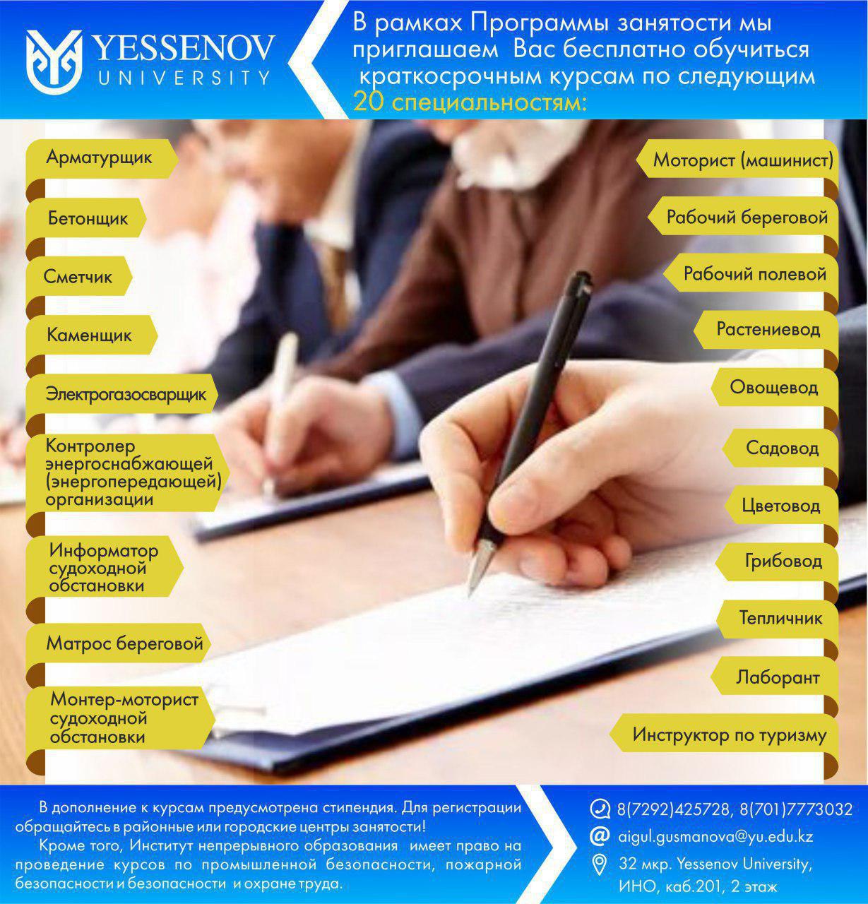 Институт непрерывного образования Yessenov University вошел в Реестр организаций образования по профессиям Национальной палаты предпринимателей Республики Казахстан «Атамекен». Вхождение в Реестр НПП «Атамекен» дает высокую репутацию и гарантированную надежность в предоставлении качественных образовательных услуг!