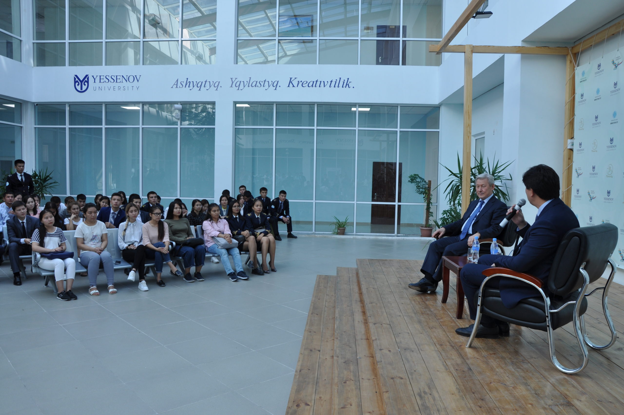 18 сентября в Yessenov University прошла встреча с Кулекеевым Жаксыбеком Абдрахметовичем. На встрече присутствовали студенты и профессорско-преподавательский состав университета. В своем выступлении Жаксыбек Абдрахметович подробно рассказал о своем жизненном пути, ответил на вопросы студентов. А также отметил, что всего можно достичь благодаря упорному труду. В конце встречи гость сфотографировался на память со студентами.