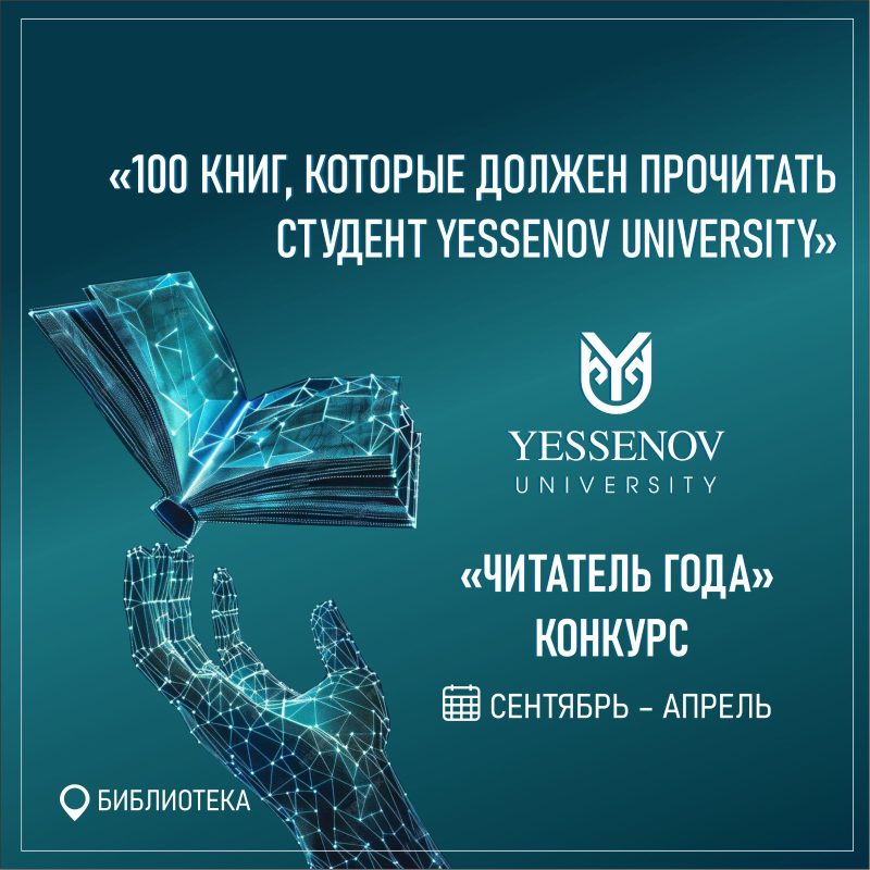 Приглашаем вас участвовать в конкурсе «Читатель года», проводимом в рамках проекта «100 книг, которые должен прочитать студент Yessenov University»!