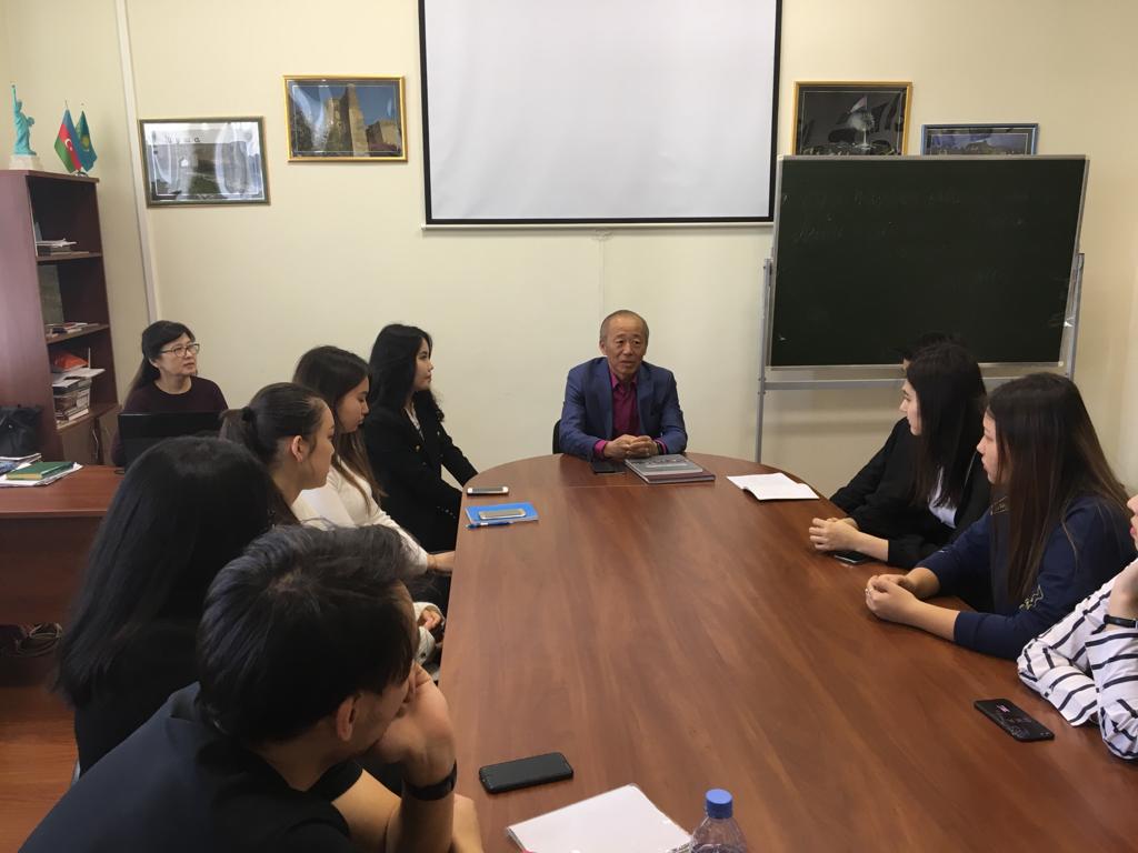 “Бизнес және құқық” факультетінің «Халықаралық қатынастар және туризм» кафедрасының «Достық» клубының студентері Алғыс айту күніне орай “Часон” этно-мәдени бірлестігінің директорының орынбасары В.Я. Цоймен кездесті.