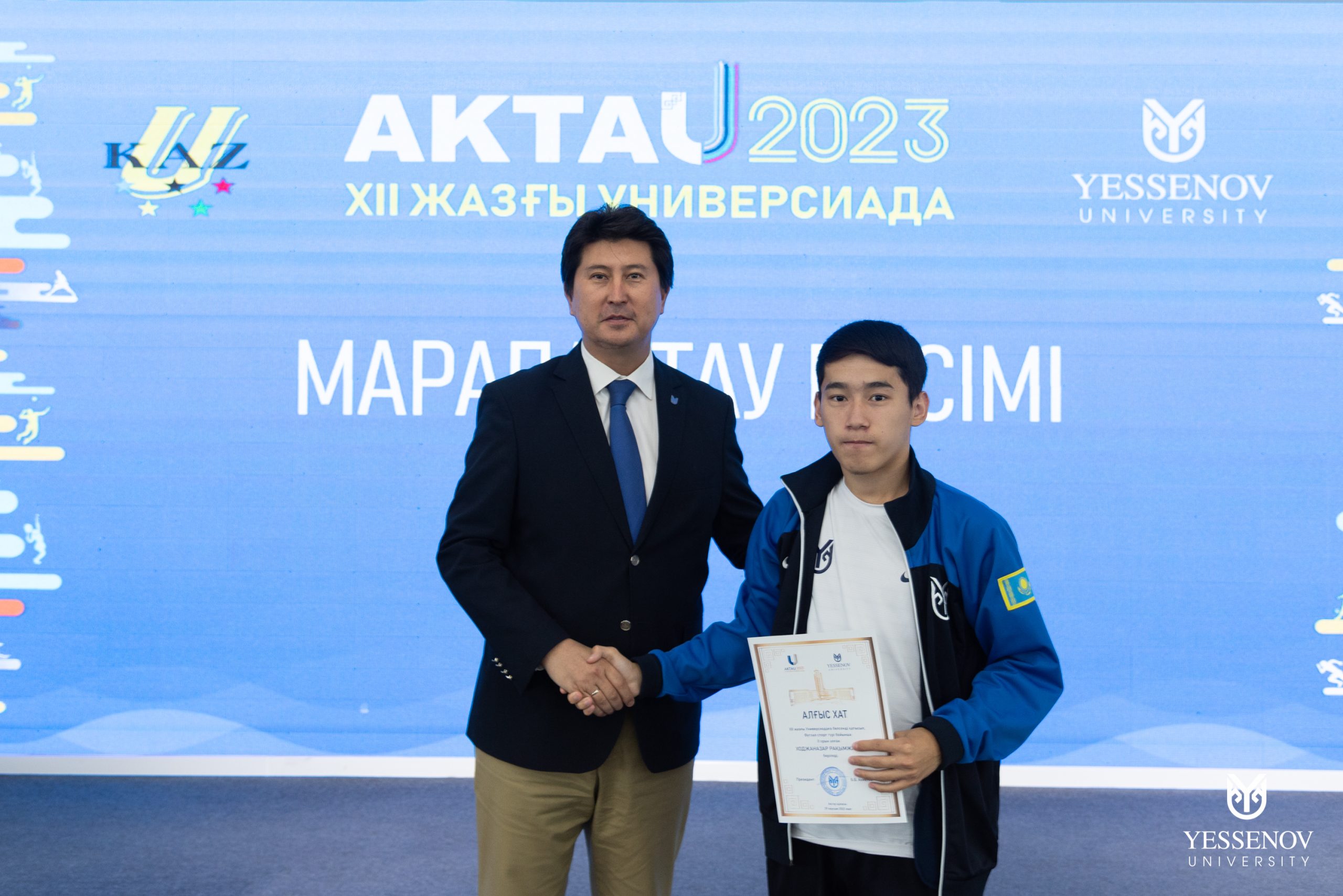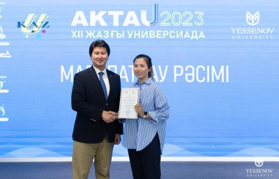 Yessenov University президенті Берік Ахметов ҚР ЖОО студенттерінің арасында өткен XII жазғы Универсиадада жеңімпаз атанған YU студенттерін марапаттап, оқу ақысына сертификат табыстады.