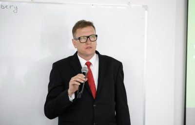Тренингтің лекторы Dr.-Ing. Себастиан Тиммерберг, Гамбург университетінің (HAW Hamburg University) және жаңартылатын энергия және энергия тиімділігі құзыреттілігі орталығының (CC4E) профессоры, өзінің халықаралық жасыл сутегі тәжірибесімен бөлісті.
